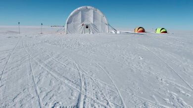 Punto de muestreo en la plataforma de hielo del Mar de Ross. El hueco mide aproximadamente 30 cm de diámetro y 400 m de profundidad hasta llegar al agua líquida. En este ambiente gélido se encontró por primera vez cierto grupo de bacterias que domina la comunidad de las oxidadoras de azufre. Solo ha habido dos expediciones en las que se ha conseguido alcanzar el agua líquida bajo el hielo, la primera en 1977 y la segunda en 2017, a pesar de los múltiples intentos. / F. Baltar.