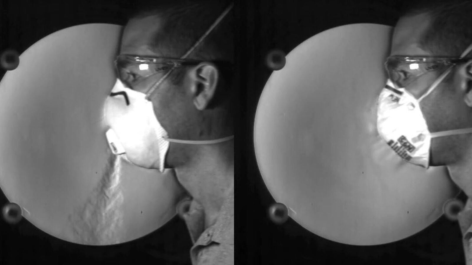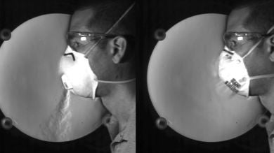 Mediante diferentes técnicas que capturan la variación de fluidos, un equipo estadounidense ha grabado las diferencias visibles entre utilizar una mascarilla N95 con válvula, otra sin válvula y no utilizar mascarilla.