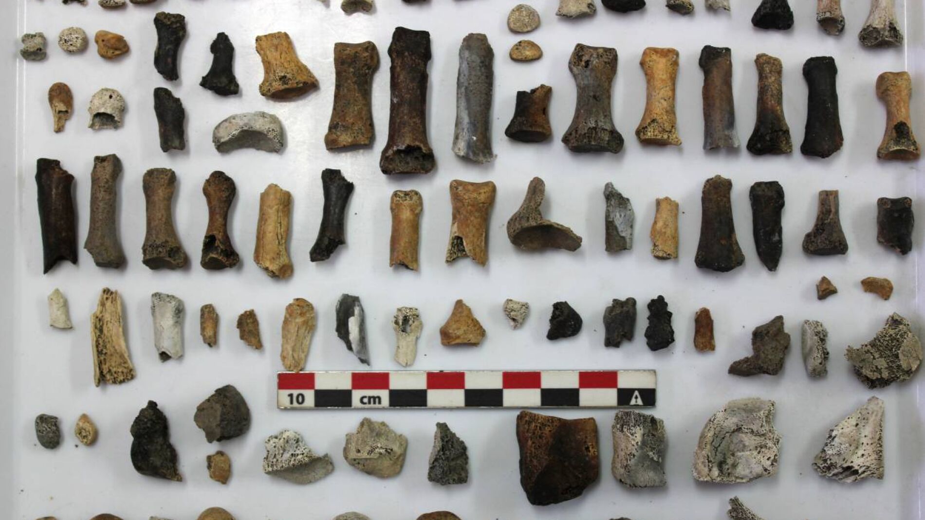 Se trata de un conjunto de muestras antropológicas altamente fragmentadas, la inmensa mayoría no supera los dos centímetros de longitud, y con una amplia gama de coloración que va desde marrón a blanco, pasando por negro, gris y azul. Además, tienen patrones de fractura y cambios en la forma de los huesos que enfatizan la exposición a temperaturas superiores a 650 grados centígrados.