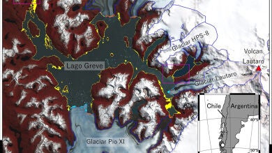 Shin Sugiyama, Shuntaro Hata. 'Abrupt drainage of Lago Greve, a large proglacial lake in Chilean Patagonia, observed by satellite in 2020'. 'Communications Earth & Environment' (2022).