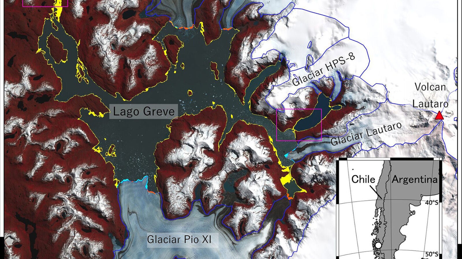 Shin Sugiyama, científico especializado en glaciares de la Universidad de Hokkaido (Japón) y el investigador Shuntaro Hata estaban estudiando las fluctuaciones de los glaciares en la Patagonia chilena mediante imágenes de satélite, cuando se dieron cuenta de que el lago proglacial Greve se había reducido considerablemente en el corto periodo de tiempo comprendido entre abril y julio de 2020.
