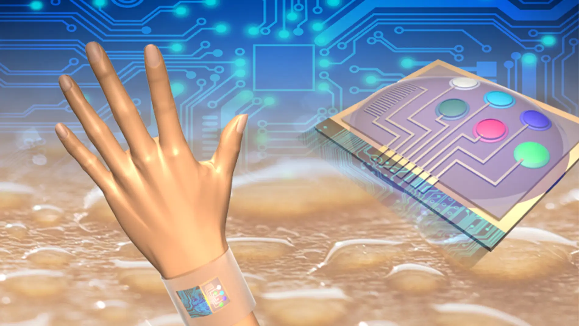 La tecnología “se compone de sensores electroquímicos flexibles que interactúan con la piel y circuitos integrados de silicio consolidados en una placa (también flexible) para el procesamiento de señales complejas”, dice el autor.