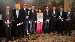 La vicepresidenta del Gobierno, ministra de la Presidencia, Relaciones con las Cortes e Igualdad, Carmen Calvo ha entregado hoy a los familiares y discípulos de siete académicos represaliados durante la Guerra Civil y dictadura un diploma como símbolo de la restitución de sus medallas y en reconocimiento a sus méritos.