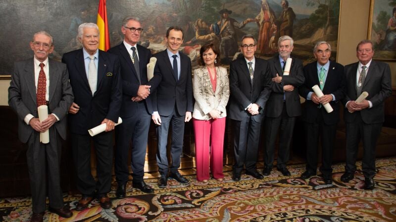 Enrique Moles, Ignacio Bolívar, Honorato de Castro, Enrique Hauser, Emilio Herrera, Pedro Carrasco y Blas Cabrera. Los méritos de estos académicos represaliados durante la Guerra Civil y la dictadura se han reconocido hoy en un acto presidido por el ministro Pedro Duque y la vicepresidenta del Gobierno, Carmen Calvo, quien ha entregado diplomas conmemorativos a los familiares y discípulos de aquellos científicos.