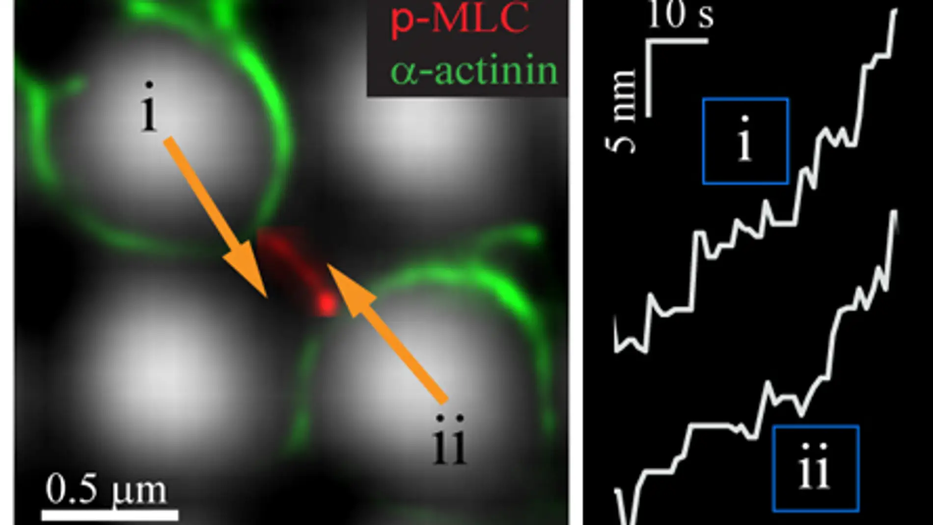 De esta forma descubrieron unidades contráctiles de actomiosina (CU) –complejos proteicos análogos a las fibras musculares, pero a nivel celular– que movían, de manera simultánea, pilares opuestos en pequeños pasos de forma regular.