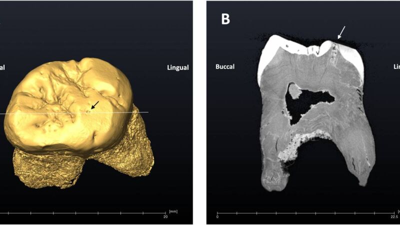 Para evaluar la pieza dental fósil el equipo examinó el diente mediante análisis químicos no destructivos con un microscopio electrónico de barrido ambiental, que genera imágenes muy detalladas de la superficie del diente y permite observar la estructura de la caries y analizar los cambios en el esmalte; así como con tomografía axial computarizada, con la que se obtienen imágenes en 3D del interior del diente sin dañarlo, que se utilizó para confirmar la presencia de la caries, medir su tamaño y analizar su profundidad. El uso de estas técnicas permitió a los investigadores verificar la descalcificación en los bordes de la lesión y la extensión de la misma.