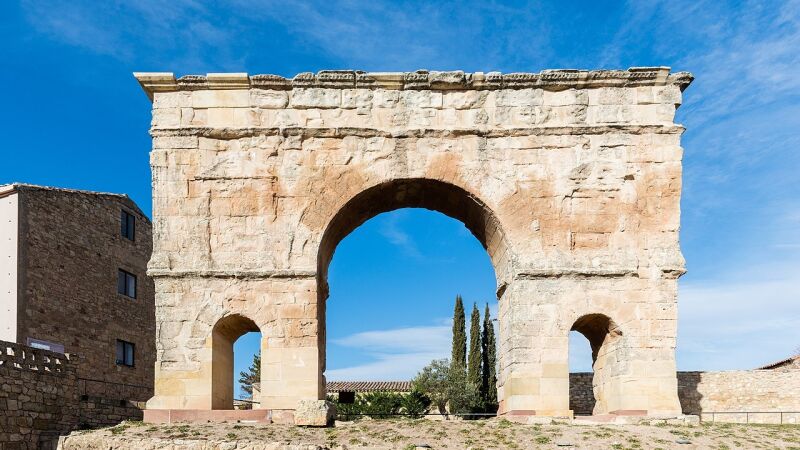 En cuanto a dimensiones, el Arco de Medinaceli tiene poco más de 13 metros de largo y, aproximadamente, 2 metros de ancho por 8,10 metros de altura. Fue construido en el siglo I y es importante saber que este arco del triunfo es el único arco monumental que existe en España que cuenta con tres vanos. Algo realmente atípico.