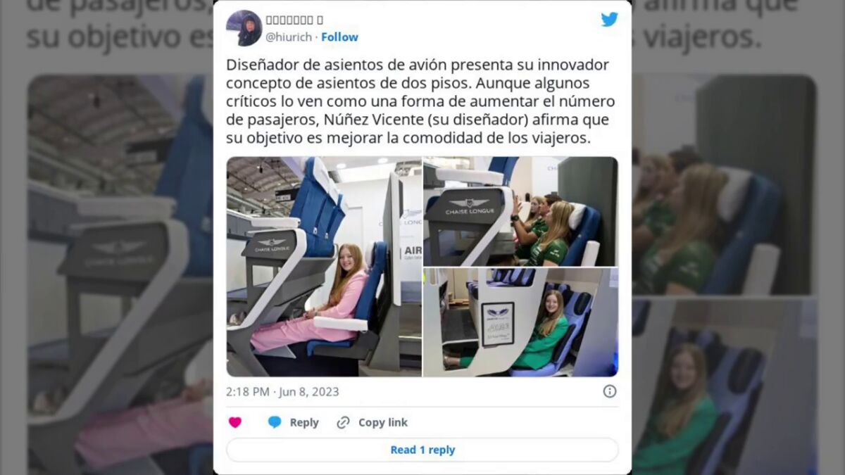 Se trata de Alejandro Núñez de Vicente, fundador de la compañía Chaise Longue Economy Seat que según el medio CNN ha diseñado un concepto de clase turista en el que establece un nivel superior y otro inferior, con escalones, para la ubicación de los pasajeros.