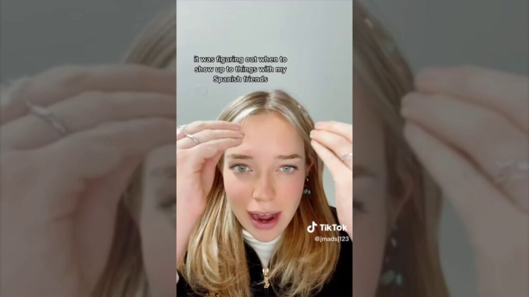 Al principio del vídeo, Maddie explica que el estilo de vida en España no le ha supuesto ningún problema en el cambio, sino lo que más "raro" le parece, es lo que ocurre cuando queda a una hora concreta para salir con sus amigos españoles de fiesta.