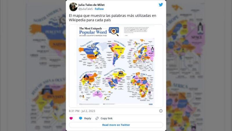 El mapa con las palabras más usadas en Wikipedia de cada país del mundo