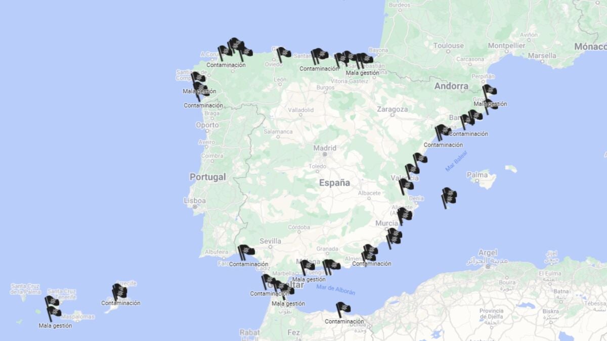 La ONG Ecologistas en acción ha publicado el informe y el mapa de este año de las playas con bandera negra de España de este 2024 y que recoge algunas de las afecciones ambientales más graves en el litoral español.