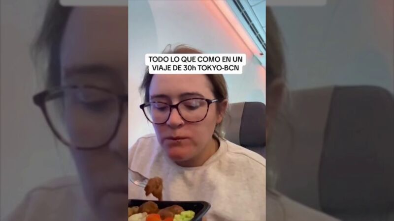 Una mujer cuenta todas las comidas que le han servido en un viaje en avión de 30 horas con destino Barcelona
