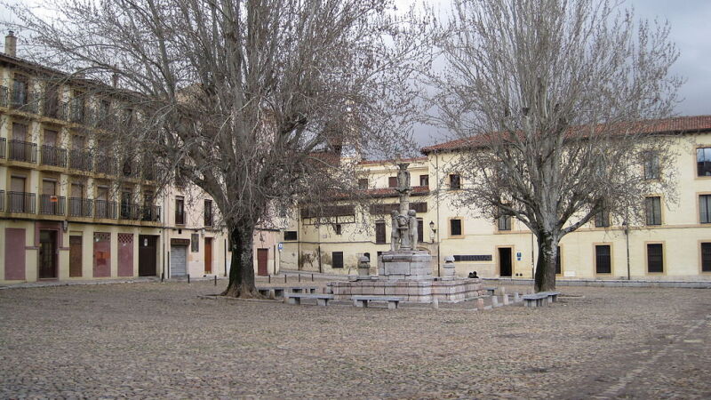 Se conoce popularmente como "Plaza del Grano” porque, como su propio nombre indica, en ese lugar se celebraba el mercado del grano, así como de varios productos y herramientas de carácter agrícola. En el centro de esta Plaza, y entre dos imponentes árboles, encontramos un elemento de lo más significativo.