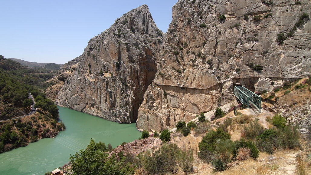 El Caminito del Rey, considerado un milagro de la ingeniería, es un paso construido en las paredes del desfiladero de los Gaitanes. Se trata de una pasarela peatonal de más de tres kilómetros (además de 4,8 kilómetros de accesos), adosada a la roca en el interior de un cañón, con tramos de una anchura de apenas un metro, colgando hasta 105 metros de altura sobre el río.
