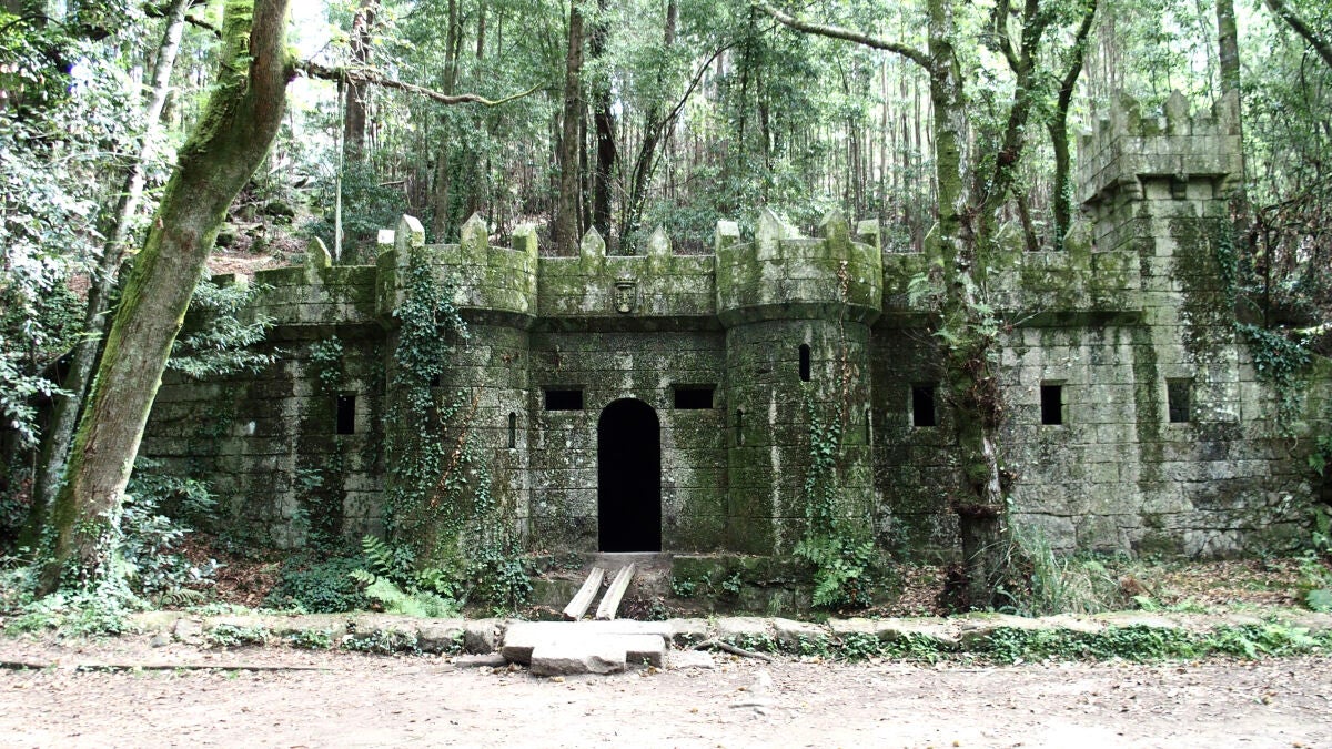 A orillas del río Orxas, un puente marca la entrada al bosque encantado, un espacio envuelto por la naturaleza hasta el último de sus recovecos. Entre árboles, plantas trepadoras y mucho musgo, un castillo de apariencia medieval se impone. No fue construido hace tanto, pero mantiene la esencia de la Edad Media.