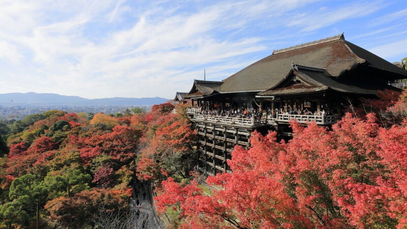 Es verdad los paisajes del momiji más célebres y celebrados de Japón se pinta aquí, en Kioto particularmente donde se combinan con los magníficos templos (tanto es así que hay que reservar el viaje con bastante antelación, en Kioto el momiji es temporada alta); la estampa del Templo Kiyomizuedera al caer la noche con los arces iluminados es especialmente famosa en el momiji de Kioto; el Parque de Nara, donde podrás ver ciervos en la naturaleza, y Minoo Park en Osaka son también lugares muy recomendados en esta época.
