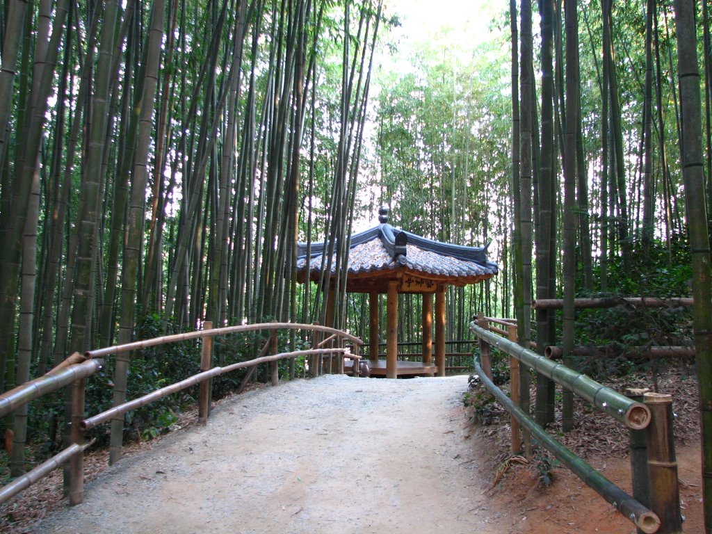 El lugar más conocido es el Jardín del Bambú Juknokwon, que es el bosque principal de la ciudad de Damyang. Con una vegetación muy frondosa, es perfecto para meditar tranquilamente en alguno de sus caminos. Sentir la brisa fresca rodeando nuestro cuerpo, escapándose entre las hojas de los bambúes, es casi como alcanzar el nirvana (de hecho, la temperatura dentro del bosque baja hasta 7 ºC con respecto al exterior). Abierto en 2003, cuenta con diferentes senderos señalizados. Son ocho, comienzan en un mirador principal y cada uno tiene una temática diferente. Si te quieres hacer todos, habrás recorrido 2,4 kilómetros por el bosque y, además, te habrás topado con bastantes estatuas de osos panda, que decoran los caminos.