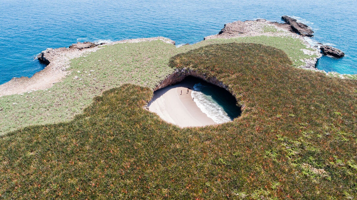 En Bahía de Banderas, en la mexicana Riviera Nayarit, están las islas Marietas y en ellas playa Escondida, una de las playas más aisladas, remotas, tranquilas y sorprendentes del mundo; a esta playa solo se puede acceder en barco y recorriendo el último tramo del viaje a nado a través de un túnel submarino… y es que se trata de una playa dentro de una cueva, única y excepcional sin duda, y con un acceso muy limitado.
