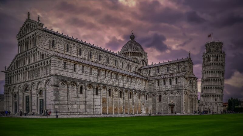 Es innegable que la torre de Pisa es la torre inclinada más famosa del mundo, además se trata de una torre que comenzó a inclinarse ya durante su construcción y, curiosamente, sigue en pie, en gran medida por todo los que los arquitectos, tanto durante su construcción como después, han hecho para evitar que se viniera abajo. La inclinación de esta torre respecto a su vertical, es de 4 metros y medio.
