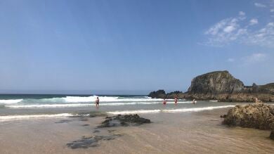 La playa es un espectáculo con su lago para los niños y su mar abierto para los demás, eso sí, prepárate para zambullirte en aguas frías y entre olas escuchando siempre los consejos de los vigilantes de esta playa porque aquí el mar no bromea; la bandera verde está casi sin estrenar, la roja te agua la tarde (más bien al revés, te deja a pie de arena…) pero no te asustes, la más habitual es la amarilla, báñate con precaución.