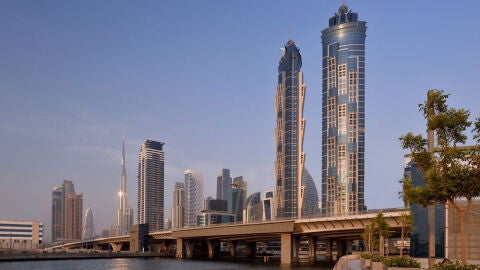 Rose Rayhaan by Rotana. Es un hotel de cuatro estrellas que tiene 333 metros de altura y 72 pisos. Está situado en un lugar privilegiado de la zona financiera de Dubai y unas vistas panorámicas de la ciudad y del Burj Khalifa; que con sus 828 metros es el edificio más alto del que se tienen constancia. El Rose Rayhaan dispone de 462 espaciosas habitaciones de entre 28 y 60 metros cuadrados, gimnasio y spa y varios restaurantes de comida internacional.