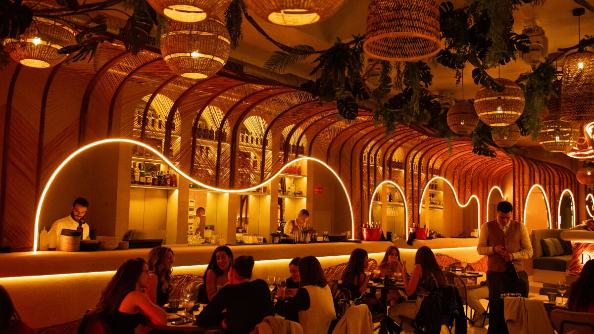 El diseño del restaurante es moderno y sofisticado, con interiores que mezclan elementos urbanos y elegantes. El restaurante ofrece diferentes espacios, cada uno con su propia atmósfera, combinando acabados en metal, ladrillo y mimbre. El espacio destaca por su carácter versátil, adecuado tanto para cenas íntimas como para eventos sociales más amplios o eventos corporativos.